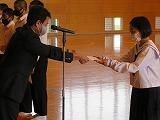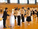 まずは、表彰ですが、団体優勝した女子剣道や個人の河野真子さんをはじめ、男女バスケ、軟式野球、柔道、陸上、バドミントン女子個人、男子ソフトテニス個人など多くの部や個人を表彰いたしました。紙面の都合上詳細な報告でなく大変申し訳ありません。