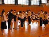 さて、本日の5校時に1年2組の体育の相互授業参観が行われました。女子は柔道、男子はダンスでした。柔道では、「後ろ受け身の技能のポイント」を理解して正しい受け身をすることができるようになることが本時の目標でしたが、しっかりポイントを押さえながら活動していたのが印象的でした。また、ダンスではリズムよく弾んで踊る。隊形移動にも注意することをねらいとして授業が行われました。実際に自分たちのダンスがどうなのか、ビデオで撮影してよりよいダンスに近づける取組もあり、大変参考になりました。