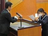 本日の午後に第74期生徒会役員新旧交代式を行いました。まず、本日まで1年間にわたり執行部及び専門委員会の長・副として日々責任をもって活動してくれた役員の皆さんに敬意を表し、そして新役員の皆さんに任命証とエールを送りました。旧役員の皆さんには、「新型コロナウイルス感染症」により大きな行事が計画倒れや中止となるなど、本当に残念な思いをたくさんさせてしまいました。申し訳なかったです。新役員の皆さん、これからの都農中をさらに発展させていけるよう、各ポジションの責任者という自覚をもって活躍してくれることを期待しています。旧役員の皆さん、本当にお疲れ様でした。そして、ありがとうございました。