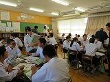 本校では、職員研修の一つに年間を通した教師の授業改善と指導力の向上をめざして、計画的に研修を実施しています。その一環として、全職員が授業を公開して、その後研究会を行う取組をしています。本年度は、全職員の授業において、①「まとめ」が「学習課題」や「めあて」の答えとなる授業づくり、②言語活動の充実、③確実な振り返りの工夫を共同実践テーマとして取り組んでいます。写真は、川野先生の2年:社会科(地理)の様子です。