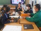 11月17日(金) 本日の「総合的な学習の時間」に、2年生は『つの未来学』に取り組みました。前回、オリエンテーションを行い、「都農町マーケット跡地の有効活用」について考えていくために現地調査を行いました。今回は、その調査をもとに具体的な考えをまとめるために、各グループに分かれて意見交換を行いました。