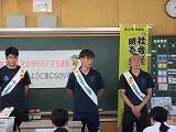 6月19日、児湯地区保護司会および児湯地区更生保護婦人会の皆様をお迎えし、七夕交流事業が本校にて実施されました。この事業は、毎年7月に展開される“社会を明るくする運動”の一環として行われているもので、「犯罪が起きないように星に願いを」というテーマのもと、未来を担う子どもたちの心に“思いやり”や“責任感”を育むことを目的としています。事前に生徒が一人ひとり心を込めて書いた短冊を、保護司会の皆様がご準備くださった立派な竹に結び付けました。短冊には、「地球温暖化がなくなりますように」「家族が元気で過ごせますように」「困っている人の力になりたい」など、純粋で温かな願いが並びました。