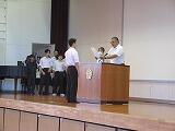 式の最後には、校長先生から各種大会に参加した全員の努力をねぎらう言葉とともに、「現状をより良くするために、大きなことではなくても構いません。ほんの少しでも、自ら行動を起こし、改善につなげていってほしい。」というお話がありました。