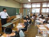 6月26日、都農東小学校の6年生を対象に、都農中学校の特色について説明を行いました。児童の皆さんは、真剣に話を聞いてくれました。また、本校で推奨している自学の取り組み方についても紹介し、実際に体験してもらう時間を設けたところ、皆さん意欲的に取り組んでくれました。