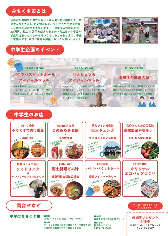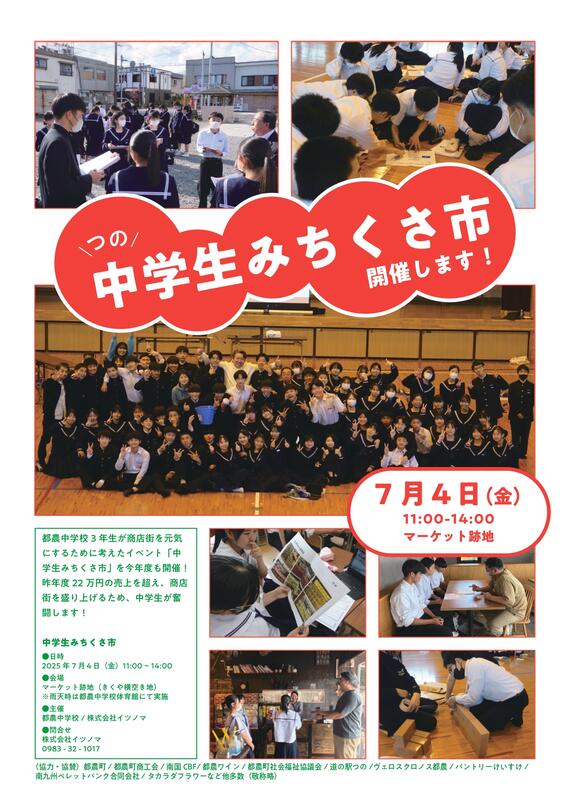 明日7月4日は「みちくさ市」が開催される日です。3年生がこれまで力を合わせて準備してきました。将来の都農町を支える子どもたちの成長を、どうか温かく見守ってください。皆様のご来場を心よりお待ちしております。