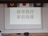 7月1日、修学旅行事前指導が行われました。いよいよ明日から、2年生は修学旅行に出発します。安心・安全な3日間となるよう、この日は最終確認が行われました。暑さが続く中での行程となりますが、仲間とともに思い出に残る素晴らしい旅行になることを願っています。