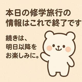 1日目の午後は風もあり過ごしやすかったようです。また、体調を崩したり、一人でまわる生徒もなくみんな元気だったとのことでした。