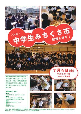 いよいよ7月4日は「みちくさ市」です。現在、代表生徒が地域の皆様に向けたPR活動に熱心に取り組んでいます。多くの地域の皆様、保護者の皆様にご来場いただけますと幸いです。どうぞよろしくお願いいたします。