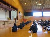 さて、本日午後から3年生は、入試に向けての意識とマナーの向上及び学年全体でまとまっていこうとする意識を高めることを目的としまして、講座を実施しました。講師は、日章学園の先生と生徒6名に来校していただき、高校受験や将来を見据えた生き方や礼法について指導をしていただきました。また、ダンスを通して学年でまとまり高め合っていこうという気持ちをつくることができました。このような機会をきっかけとして自身の進路に向けた計画を真剣に考えていって欲しいものです。