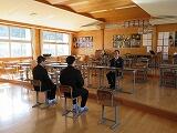 29日(金)の午後、3年生は受験に向けた面接教室を行いました。本年度は、面接官を本校職員以外の方に依頼しましたところ、町教育委員会の委員の皆様、教育総務課の課長を含む3名の職員、小学校の教頭先生や高校の教員を退職された方など7名の皆様が、面接官となり3年生を指導していただきました。