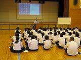 本日の1年生の「総合的な学習の時間」は、各分野で働かれている企業の方をお招きして、その職業や企業等の紹介を含め、これから自分の進路や就職を考えていかなければならない中学生(1年生)に「今、大事なこと」や「挑戦することの大事さ、失敗することは無駄ではないこと」などを教えていただきました。