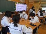 5月12日(金) 本日の5校時は、1年生は教科の授業、2,3年生は、『総合的な学習の時間』でした。2年生は、タブレットを活用しながら、7月5日,6日,7日に実施される修学旅行の班別自主研修の見学地調べなどの「修学旅行事前学習」に取り組みました。また、3年生は、「つの未来学」として、都農町の歴史を振り返りながら、まちづくりへの問題提起「第二の〇〇〇〇になろう!」についてのオリエンテーションを行いました。