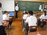 7月5日(水)6校時、3年生の総合的な学習の時間に。都農神社宮司から「都農町の歴史」についてのお話をしていただきました。本町の歴史と伝統、また宮司の自慢話も含めて楽しい1時間でした。講話の後には生徒から拍手がおきました。