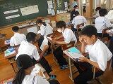 7月10日(月) 今日は、2回目の学校参観日でした。参観授業は、1年1,6組(英語)、1年2,5組(国語)、1年3組(数学)、2年1,6組(英語)、2年2組(技術)、2年3,5組(美術)、3年1,2,6組(総合)でした。写真は、1年生から3年生まで、学級ごとの参観授業の様子です。暑い中、ご参観ありがとうございました。