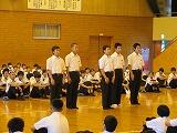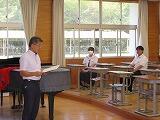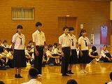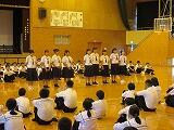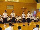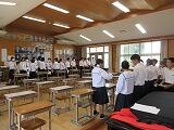 終業式では、1学期の反省(1年代表: 野村妃奈乃さん、2年代表:太田真白さん、3年代表:小西真琴さん)、校長先生のお話、校歌斉唱(指揮:松脇大和さん、伴奏:上野瑠華さん)、生徒指導主事による夏休みの過ごし方についての話がありました。