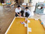 7月29日、事務室と校長室前の床の修繕工事が始まりました。