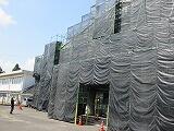 現在、体育館の外壁修繕工事が行われています。外壁打診調査、高圧水洗浄、シーリング工事、外壁改修、防水改修、塗装改修と作業が計画的に進められています。毎週金曜日に、学校、教育委員会、業者との打ち合わせ会が行われます。