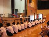 9月24日、都農中の代表として自覚をもたせるとともに、大会に向けての士気を高め、全校で部活動生を応援する雰囲気を作る目的で、地区中学校秋季体育大会の激励会が行われました。