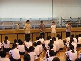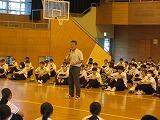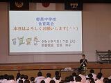 9月17日、食育集会で、宮原栄養教諭の講話がありました。生徒は、話を通して、食のバランスや役割、給食の意義などを知り、加えて、食に対する感謝の気持ちをもつことができたようでした。また、お弁当作りについてのアドバイスもあり、お弁当の日への意欲と意識を高めることができたようでした。宮原先生ありがとうございました。
