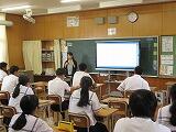 7月16日、教頭が、都農小学校の6年生の授業で、都農中学校の説明をしました。また、7月18日、都農東小の6年生で説明をしました。