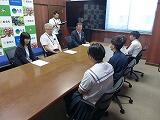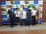 7月29日、全国大会や九州大会への出場に先立ち、本校の空手道および柔道競技の選手が、都農町長を表敬訪問しました。空手道競技に出場する生徒は、「監督からの指示どおりに試合を進めることができ、日頃の練習の成果を十分に発揮できた」と、これまでの取り組みを振り返りながら、力強く語ってくれました。柔道競技に臨む生徒からも、「全力で挑み、悔いの残らない試合をしたい」と、大会に向けた熱い意気込みが感じられました。