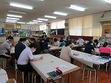 コロナウイルス感染拡大防止のため、予定しておりました三者面談も延期しております。いかがお過ごしでしょうか?職員の方も夏季休業中に予定しておりました研修内容を変更や中止、延期しながら行っています。その中で8月5日には、「ICT」と「図書館」に関する研修を行いました。ICT研修は、「今、なぜ教育現場にICTが必要なのか」を宮越教諭が自作のプレゼンテーションにより講話していただきました。また、図書館教育研修では、黒田真衣教諭が「学校図書館と図書の廃棄と新刊の選定」について説明を行いその後、職員による作業を行いました。