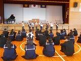 3月12日(火) 「社会を明るくする運動」の一環として、更生保護女性部都農支部の皆様のご指導を受けて、11月13日(月)に2年生が制作した『コサージュ』と、1月18日(木)に1年生が制作した『ペン立て』の贈呈式が行われました。本日、更生保護女性部都農支部の皆様に学校にお越しいただき、卒業生に向けて贈呈をしていただきました。