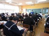 いよいよ明日から私立受験が行われます。本校の3年生は、8校に73名の生徒が、専願・併願受験に挑みます。6校時には、最終の事前指導を行いました。インフルエンザ等がとても心配ですが、3年生は自己管理がしっかりできていますので、最後まで気を張って頑張ってくれることをこころから祈願しています。保護者の皆様、送迎等ご迷惑をおかけいたしますが、どうぞよろしくお願いいたします。