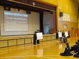 本日のT・T(都農タイム)の時間に生徒会による生徒集会が行われました。体育館への入場も私語もなく整然と始まりました。会では、各委員会の活動の反省と3学期の活動内容がプレゼンを使って報告されました。各部とも具体的な活動内容が報告されましたので、あとはいかに実践に移していくかです。各学級の委員会活動と連携・協力し合いながら活動の充実を図ってもらいたいと思います。また、後半は冬季休業中に実施した「生徒会リーダー研修会」で決定したことについても報告がありました。新生徒会でまずは、「やってみよう!」という動きがとても立派だと思っています。我々教師も全面的に応援します。「一人一人が誇れる都農中」めざして、みなさんと活動を共にしていく仲間を増やしていきましょう!