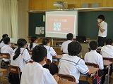 授業では、視聴覚機器や自作のワークシートの効果的な活用について、他教科にとってもとても参考になる授業でした。授業提供本当にありがとうございます。また、この取り組みに町教育委員会からも湯地対策監や山之口指導主事が参加していただき、適切な助言等をいただいております。先生方本当にありがとうございます。