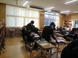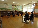 3年生は今月末に私立高校の受験を控えています。少しずつ緊張感が高まってきている様子が伺えます。そんな中、3年生は5・6時間目を使って、外部の方に面接官としておいでいただき面接の指導をしていただきました。面接官には、町の教育委員会の先生方、小学校の校長先生や教頭先生など10名の方が2名ずつペアを組み、3年生の全生徒を5グールの4班に分けて実施しました。これまでの校内での面接指導とはまた違った緊張感で真剣に取り組んでいる姿が印象的でした。面接官からのアドバイスを素直に受け止めて、本番及びこれからの生活に生かしていってほしいと思います。面接官をお願いいたしました皆様方に感謝申し上げます。お忙しい中、ありがとうございました。