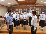 9月15日(木) 本日、「西都児湯地区中学校秋季体育大会」の『選手激励会』を行いました。出場する各部活動のキャプテンが、力強く大会での抱負を語ってくれました。大会は、9月24日(土)から、西都児湯地区の各会場で行われます。新チームになって初めての大会となります。どの部活動も精一杯頑張って力を発揮して欲しいと思います。各部の健闘を祈ります。
