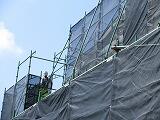 現在、体育館の外壁修繕工事が行われています。外壁打診調査、高圧水洗浄、シーリング工事、外壁改修、防水改修、塗装改修と作業が計画的に進められています。毎週金曜日に、学校、教育委員会、業者との打ち合わせ会が行われます。