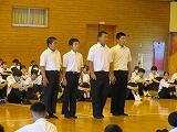 激励会では、まず校長先生から、チームのために自分のできることを精一杯取り組んでほしい旨、話がありました。次に、生徒会代表が、激励の言葉を述べました。次に、各部(野球部、女子バレーボール部、女子テニス部、剣道部、男子バスケットボール部、女子バスケットボール部、バトミントン部、陸上部)の決意表明 と選手宣誓がありました。選手宣誓は、男子バスケットボール部のキャプテンが代表として行いました。とても、立派な選手宣誓で感動的でした。