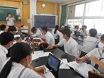 10月3日(月)2校時に3年1組で小玉先生の理科の研究授業がありました。授業は給食当番の運ぶ食缶を事例に、力がはたらいている方向に着目させ、2力のつりあう関係を考える授業でした。生徒はICTを活用し自分たちの意見を発表したり、実験結果から「2力のつりあう関係の法則」の謎を解いていきました。生徒の学ぶ意欲が感じられた授業でした。