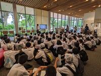 7月5日、夏祭に向けて、都農神社宮司の永友謙二様と、長年、中学校の太鼓台製作や指導に関わってくださっている塩月良一様による講演会が3年生対象に行われました。講演会を通して、3年生のみなさんは、夏祭に関わる由来やこれまでの歩み等について知ることができました。