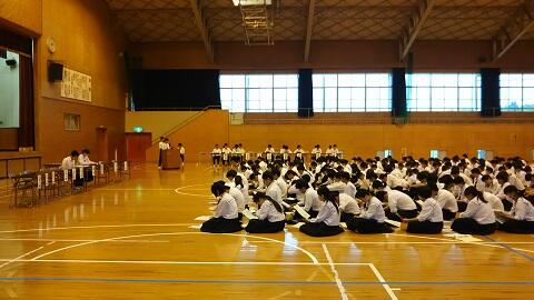 5月12日(金)本校体育館で本年度の生徒総会が開かれました。活動報告,決算報告,本年度生徒会スローガン,活動計画,予算審議が行われ「誇れる都農中にするには」というテーマで全体討議が行われました。今回決議されたスローガン「誇れる都農中に」は昨年に都続くスローガンで具体的な方法として「節度ある判断と行動」をしようと副題が設けられています。