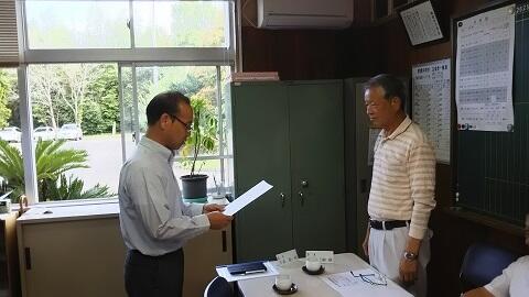 本日5月23日(火)に本校校長室で第1回学校関係者評価委員会を開催しました。会では,校長が学校評議委員に町からの委嘱状を渡し,学校経営について説明しました。その後,教務主任,生徒指導主事,主幹教諭からそれぞれ説明を行い,協議を行いました。