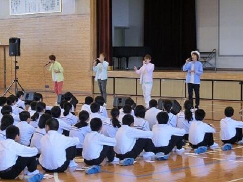 25日(木)に本校体育館で鑑賞教室が行われました。演奏者は、宮崎を拠点に活動するアカペラ&エンターテイメントグループ「Pastel Clock」。息の合ったハーモニーに生徒たちも熱心に耳を傾けていました。