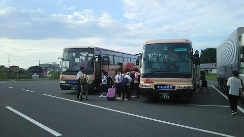 先程、道の駅「つの」で出発式を終えました。体調を崩している生徒もおらず、生徒67名が無事に出発しました。