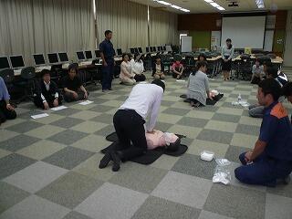 毎年、心肺蘇生については研修を行っておりますが、命に関わることですので、おのずと緊張した訓練になります。いざという時に冷静に対応できるよう全職員真剣に取り組みました。また、後半は、熱中症対策についても講話をいただきました。子供たちの安全・安心した学校生活が送れるよう常に危機意識と管理を徹底してまいりたいと思います。