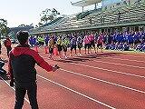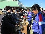 本日(8日)に「都農中駅伝・ロードレース大会」を実施しました。朝は気温1度でした。そんな中、藤見運動公園をお借りして、女子ロード、男子ロード、学級対抗駅伝の3部門で大会を行いました。どの競技も全力で走る生徒の姿が印象的でした。特に、3年生はロードの総合優勝や駅伝の部では、3年生が1位から3位を独占するなど大活躍でした。裏を返せば1、2年生の現役組は、もう少し頑張ってほしいことにもなるのかもしれません。何はともあれ、緊急事態になるケースもなく無事に終了したことに安堵感を抱いております。また、この大会では保護者の皆様が、早朝よりトン汁を調理していただきレース終了後においしくいただきました。お休みの中、レースの監察も含めご支援いただきました保護者の皆様、心より感謝申し上げます。ありがとうございました。