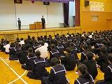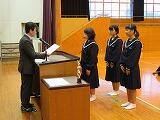 本日24日(火)は、2学期の終業式でした。終業式の前に今学期最後の表彰を行いました。英単語コンテスト満点者18名(代表で3年の河野勇月くん)、と宮日新聞の「若い目」に掲載された生徒4名(3年:江藤さくらさん、2年:河野桜來さん、黒木星杜くん、森幸枝さん)の表彰です。