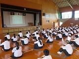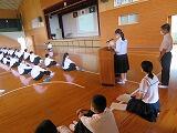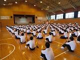 さて、本日午後から3年生は、入試に向けての意識とマナーの向上及び学年全体でまとまっていこうとする意識を高めることを目的としまして、講座を実施しました。講師は、日章学園の先生と生徒6名に来校していただき、高校受験や将来を見据えた生き方や礼法について指導をしていただきました。また、ダンスを通して学年でまとまり高め合っていこうという気持ちをつくることができました。このような機会をきっかけとして自身の進路に向けた計画を真剣に考えていって欲しいものです。