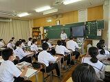 今週は、今のところ大雨の影響もなくホッとしています。さて、昨日の3校時に2年1組において、初期研修者への模範授業として社会科の授業を公開していただきました。本年度は、職員が教科・学年を超えて、3班のチームを作り初期研修者の授業づくりを指導・サポートするとともに、初期研修者以外の教員も初期研修者にポイントを絞った授業を公開しながら相互の授業力の改善や向上につなげようとする試みを行う予定です。本日は、その第1回目として社会科の渡部教諭が、授業を公開していただきました。
