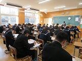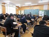 本日は朝から雨の一日となりました。そんな中、3年生は6校時に明日から行われる私立高校入試に向けての事前指導を行いました。本校では61名の3年生が専願、併願受験をします。コロナウイルス感染症への対応のため、例年の注意事項に加えて健康チェックも行われるなど可能な限りの感染予防対策をしての受験となります。受験生の皆さん、受験できることに感謝の意を表しながら、自身のベストを最後まで発揮してきてください!!全生徒の健闘を祈っています!