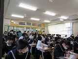 さて、本日はピア・サポートエクササイズの6回目でしたが都合により1年生のみ活動を行いました。1年生の内容は「質問をしよう」でした。先生から活動の説明を聞いた後、ペアになって「どれだけ長く、2人の会話ができるかやってみました。」この活動は、質問をうまく活用しながら友達への関心や話を聴けるようになることで他者への理解を深めていくものでした。今後も「話し手・聴き手」として双方のスキルを高めていって欲しいと思いました。