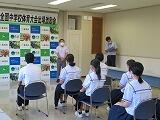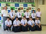 夏休みに入り、更新を怠けておりました。申し訳ございませんでした。さて、昨日、町教育委員会による中学校総合体育大会の「九州・全国大会に向けた激励会」が行われました。本校からは、今回の県大会を勝ち抜いた、女子剣道部と弓道の陶山元気さんが、参加しました。女子剣道部は、今月の9・10日に宮崎県ひなた武道館において九州大会、20日に神奈川県において全国大会に参加します。また、陶山さんは、7日に都城市早水公園文化センターにおいて九州大会に出場いたします。大会出場にあたり多大なご支援をいただきます都農町さまに心より感謝申し上げます。よい報告ができるよう頑張ってくれることを心より願っております。本当にありがとうございました。