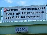 夏休みに県中学校総合体育大会が開かれ、九州・全国大会へ出場するニュースを前回紹介(8月6日版)いたしましたが、その栄誉を称え正門前の歩道橋に横断幕を作成しこの度設置いたしました。通行の際は交通安全に注意して見ていただけるとありがたいです。