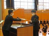 本日24日は2学期の終業の日でした。2学期の授業日数は81日でした。ほとんどの生徒が遅刻・欠席なく登校できたと思っています。今日は、式の前に表彰を行いました。表彰は、美術、あいさつ標語、英語検定、漢字検定、単元テストについてでした。たくさんの生徒が各分野で優秀な成績を収めてくれています。詳細については、次回の学校通信でお知らせできたらと考えております。その後、始業式を行いました。式では各学年の代表として、1年:高橋佑和さん、2年:河野旬音さん、3年:橋口心結さんがそれぞれの頑張れたことと課題を発表してくれました。年々発表の内容が高くなってきていると感じています。各学年とも今学期は、様々な行事に全力で取り組んだことが生徒や先生方からの反省でも挙げられました。逆に、改善点も挙げてもらいましたので、3学期そして次の学年等への課題にしてきましょう。明日から冬休みに入ります。各担当の先生や学級担任から諸注意がありましたので、しっかり守り、学習も頑張り、そしてお手伝いもしっかりしてほしいと思います。2021年も残り1週間となりました。保護者の皆様、HPをご覧いただいている皆様、本当にお世話になりました。ありがとうございました。良いお年をお迎えください!!